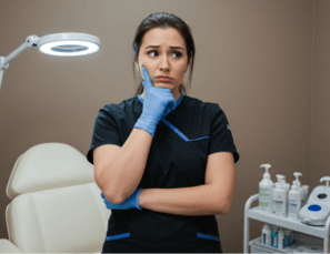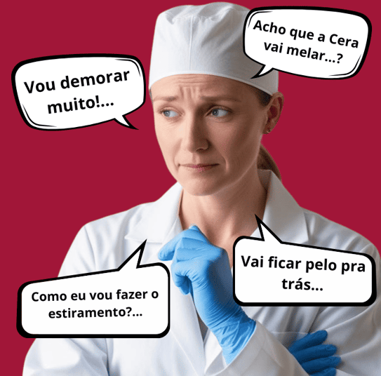 😞 O procedimento demora, a cliente fica desconfortável e você sente que algo está errado.